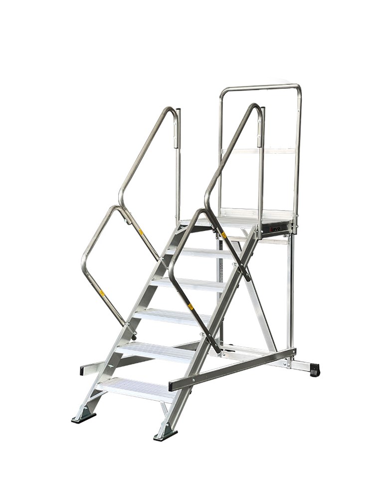 Pedana da 80 x 60 cm. Altezza al piano 100 cm. Scale professionali per l’accesso e la manutenzione su automezzi. 2 ruote 125 mm
