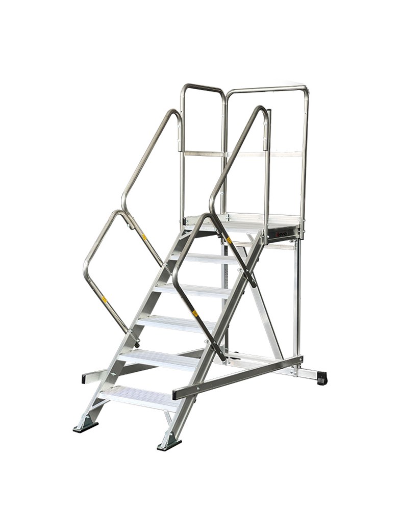 Pedana da 80 x 60 cm. Altezza al piano 120 cm. Scale professionali per l’accesso e la manutenzione su automezzi. 2 ruote 125 mm