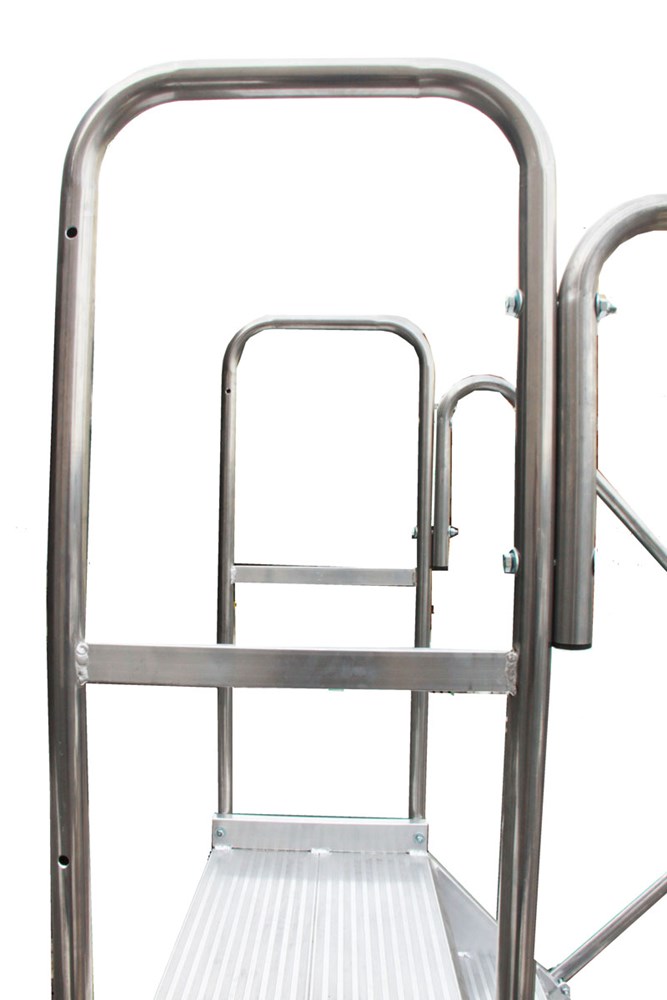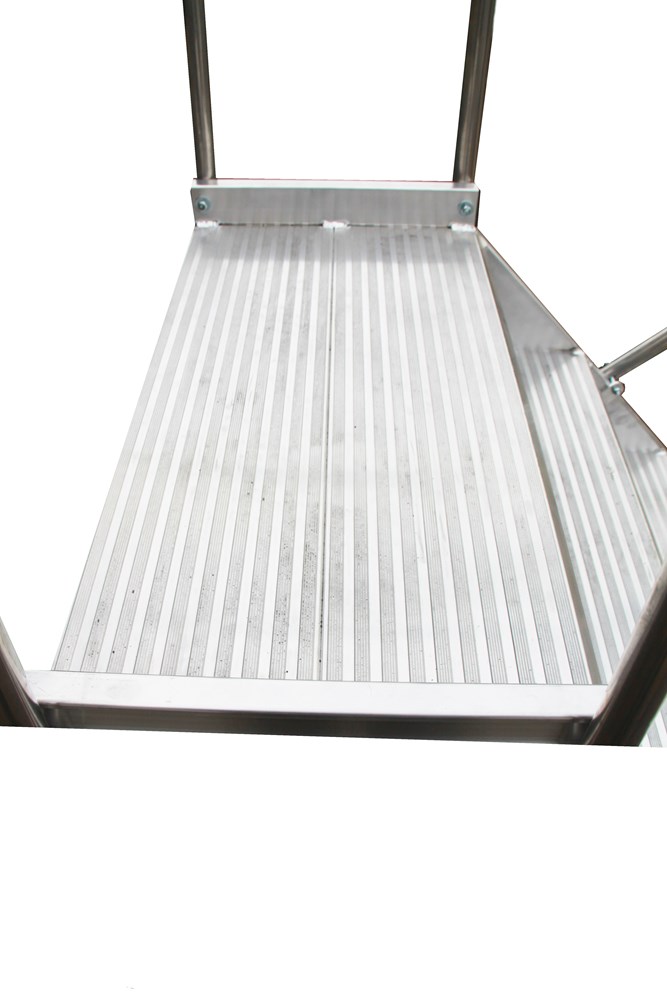 Disponibili con gradini e piattaforma in grigliato di alluminio che consente la caduta a terra di liquidi, materiali o neve mantenendo pulita la superficie di appoggio.