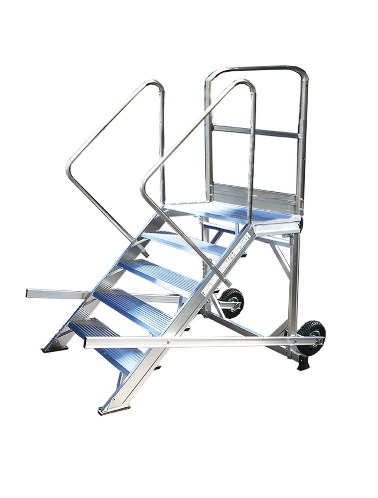 Pedana da 80 x 60 cm. Altezza al piano 100 cm. Scale professionali per l’accesso e la manutenzione su automezzi. 2 ruote 260 mm