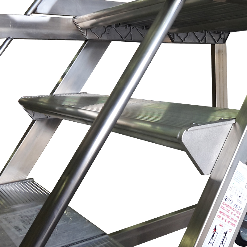 Gradini: sono montati su attacchi pressofusi con piolo e scanso antitorsione, inseriti ai montanti.