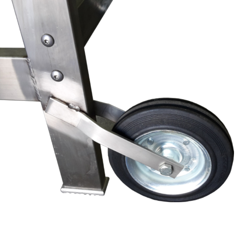 Per rientrare nella normativa europea necessita del montaggio degli stabilizzatori laterali fissi, in modo da evitare il ribaltamento della scala durante l’utilizzo.