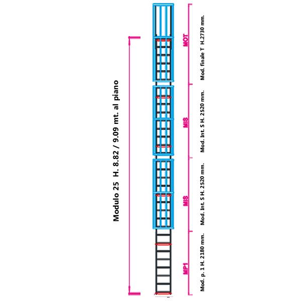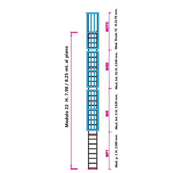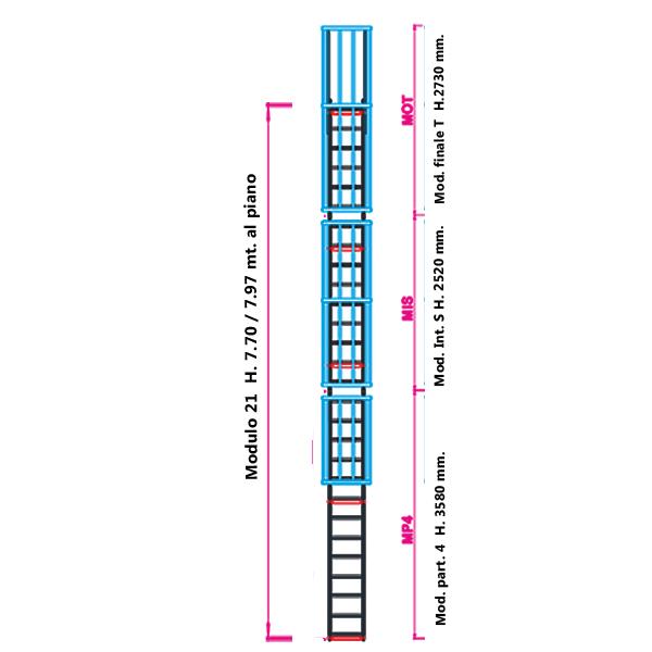 La scala a castello è dotata di 12 gradini, includendo nel calcolo anche il pianale.