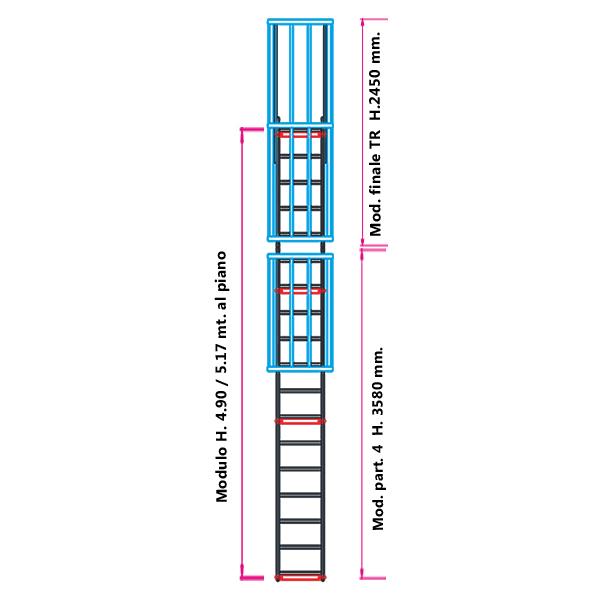Raggiunge un' altezza ideale di metri 3.28 con un corretto angolo di inclinazione di 68° che le permette di mantenere i gradini paralleli al terreno;