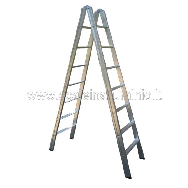 La scala in alluminio a doppia salita professionale Sc -ds Scala doppia salita 12 gradini è dotata di 12 gradini per lato, per un totale di 24 grdini;