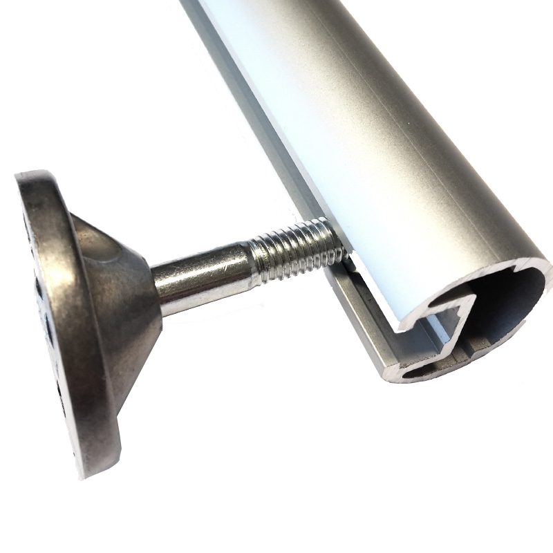 Per quanto riguarda il sistema di aggancio della scala a 12 gradini è stato previsto un elemento tubolare con diametro 30 mm da fissare a parete a mezzo delgi appositi distanziali 55 mm (personalizzabili per quanto riguarda la lunghezza) in alluminio.
