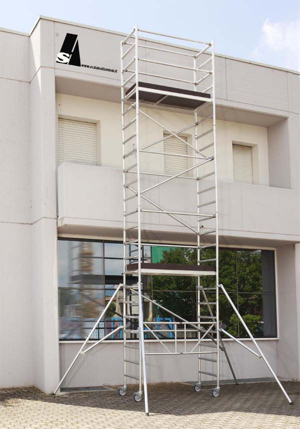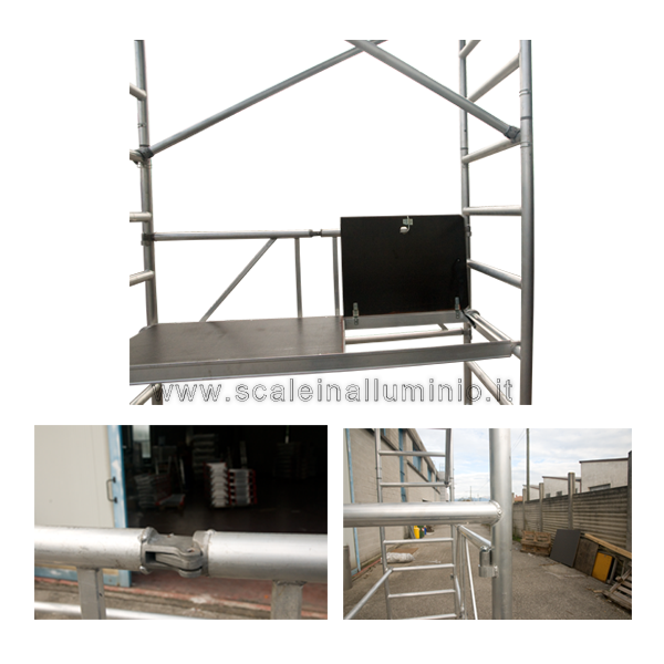 Quattro campate per una torre alta 6,878 metri; dotata di due piani di lavoro alto e di due battipiede, quattro coppie di protezione piani di lavoro e quattro staffoni laterali.