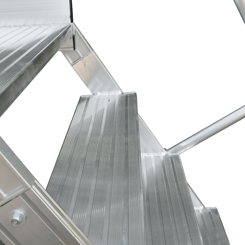 Montanti rettangolari da mm 90 x 25 mmGradini piani in profilo forato antisdrucciolo da mm 200 (a richiesta profilo portante rigato da mm 200)Alzata gradini mm 250Inclinazione a 60°Larghezza interna mm 600 / 800 in base al modelloPiano di calpestio in profilo forato antisdrucciolo lunghezza da mm 1000 / 2000 / 3000 in base al modelloParapetto di protezione da m 1,00Fermapiede mm 1504 ruote pivottanti Ø125 mm in nylon rivestite in poliuretano espanso con dispositivo frenante a doppio pedale + n 2 stabilizzatori lateraliCorrimano in profilo tondo diametro Ø mm 40Portata kg 200Conforme al D. Lgs. 81/2008 TU SICUREZZA LAVORO