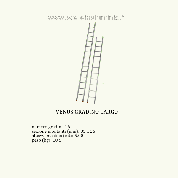 Le scale in alluminio linea VENUS semplice d'appoggio professionale, permette di soddisfare le esigenze di agricoltura, edilizia e nell’immagazzinaggio della merce su scaffali.