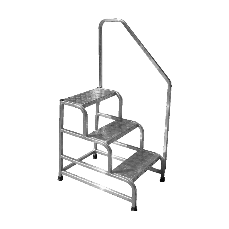Sgabello in alluminio totalmente saldato con lega di alluminio senza alcuna parte metallica.