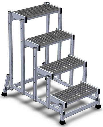 Sgabello Industriale avvitato con gradini larghi e personalizzabile con diversi accessori optional