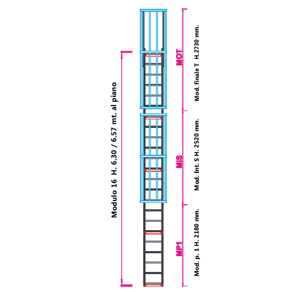 Le scala con gabbia di protezione modulari sono una valida soluzione economica in quanto vengono consegnate smontate e facilmente assemblate grazie al libretto di istruzione e norme d'uso allegate.