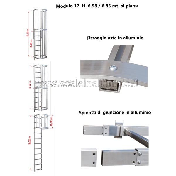 Le scala con gabbia di protezione modulari sono una valida soluzione economica in quanto vengono consegnate smontate e facilmente assemblate grazie al libretto di istruzione e norme d'uso allegate.