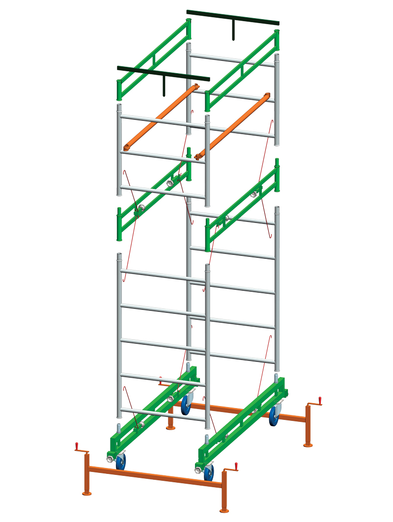 Ponteggio in acciaio costruito completamente in acciaio con speciale trattamento di zincatura elettrolitica.